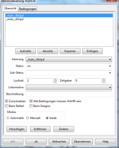 Ein Doppelklick auf ein Objekt der Liste öffnet den zugehörigen Dialog Aktions-Steuerung.