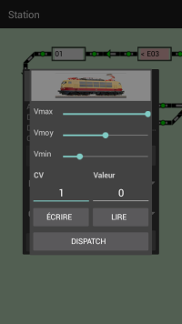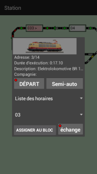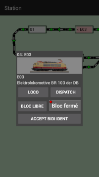Un appui long sur un bloc occupé ouvrira le contrôle de la locomotive.
