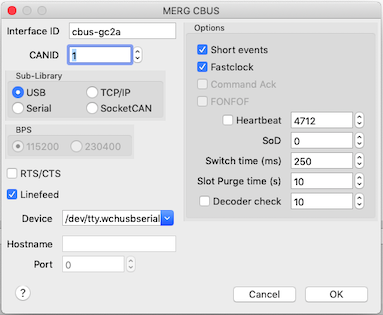 Sie verwendet den ASCII-Rahmen wie die CANGC1(e)-Schnittstelle. (Siehe Kapitel 10 des MERG "Developer’s Guide for CBUS".)
