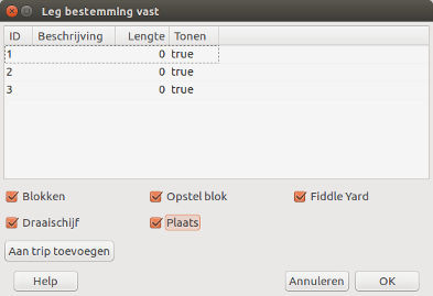 - Rocrail kiest niet altijd de kortste pad als er meerdere rijwegen mogelijk zijn. Om zeker te zijn dat de trein op de bestemming aan komt mogen er geen zijsporen beschikbaar zijn. Sluit dus alle zijsporen.