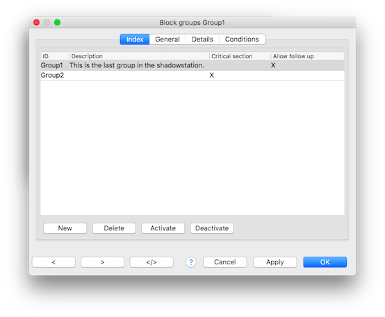 Create a new block group entry. Initially the ID is set to "New" which must be changed on the General tab.