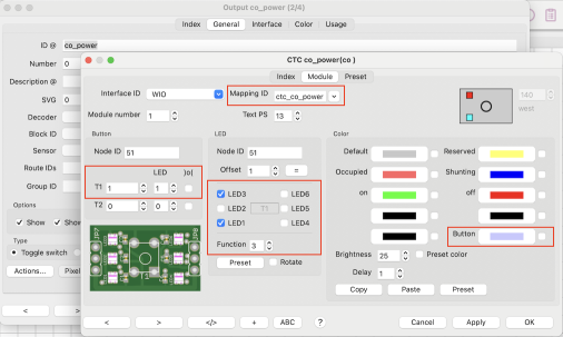 Sommaire → Matériels → Modules TCO → Configuration TCO Rocrail → TCO un bouton et deux LEDs