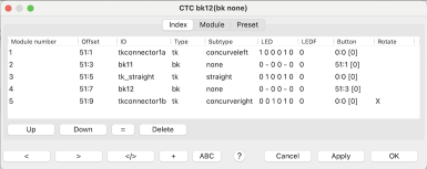 En plus des deux modules TCO "ctc_bk11" et "ctc_bk12" trois modules de voie TCO sont préparés: "tkconnector1a", "ctc_tk_straight" et "tkconnector1b".