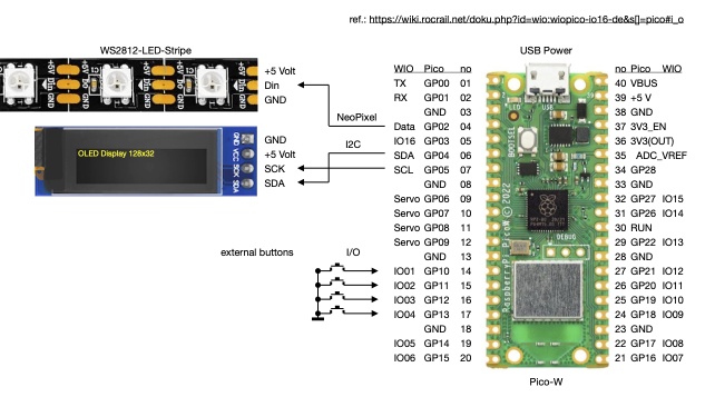 - Les LEDs sont contrôlées par les sorties Rocrail "co_led_bk11_2" … (NeoPixel gauche/droit).