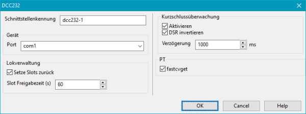 Der Gerätename der seriellen Schnittstelle, die mit DCC232 verwendet wird.