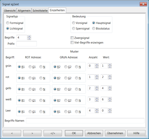 Die folgenden Signal-Einzelheiten müssen entsprechend des gewünschten Verhaltens für diese Beispiel eingstellt werden:
