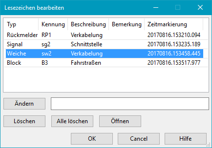 Ein Klick auf diese Schaltfläche fügt der Liste ein Lesezeichen mit Objekttyp, Kennung und ausgewählter Registerkarte hinzu.