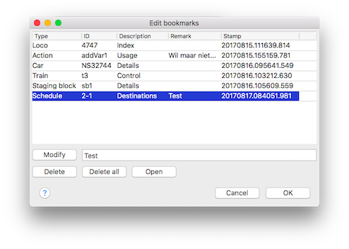 On cancel the bookmark will not be added. The remark is optional and may be left empty.