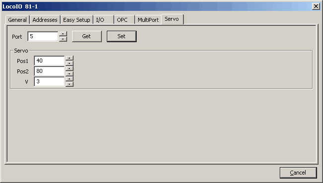 Die Ports des LocoServo müssen im Dialog Einfaches Setup oder I/O auf "Switch" eingestellt werden.