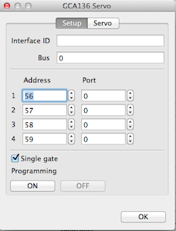 | The programming is done with normal switch commands so the GCA136 could be connected to a none GCA accessory decoder. The SV IID does not affect this dialog. |