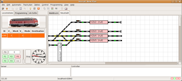 Iedere module/spoorplan heeft zijn eigen tab in Rocgui, en omdat je meerdere Rocgui's gekoppeld hebt met de server is het mogelijk om de gehele layout te tonen over een aantal computers.