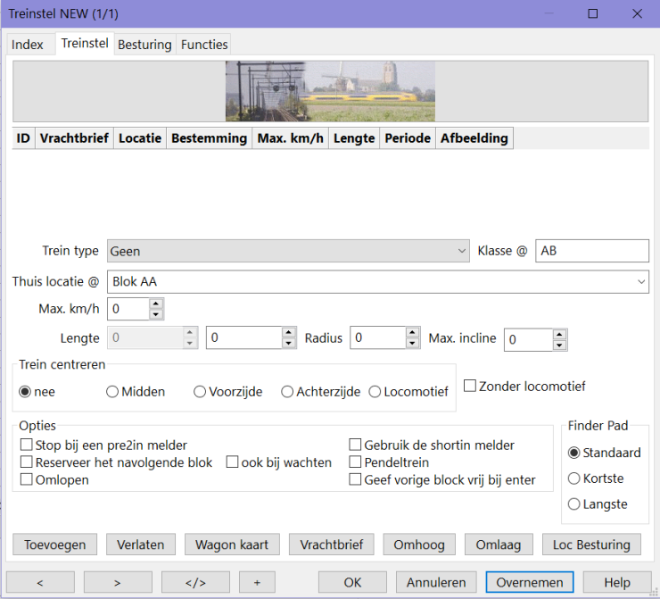 Wanneer hier het treintype is ingevuld, overruled deze de instelling gedaan in trein-type voor de loc