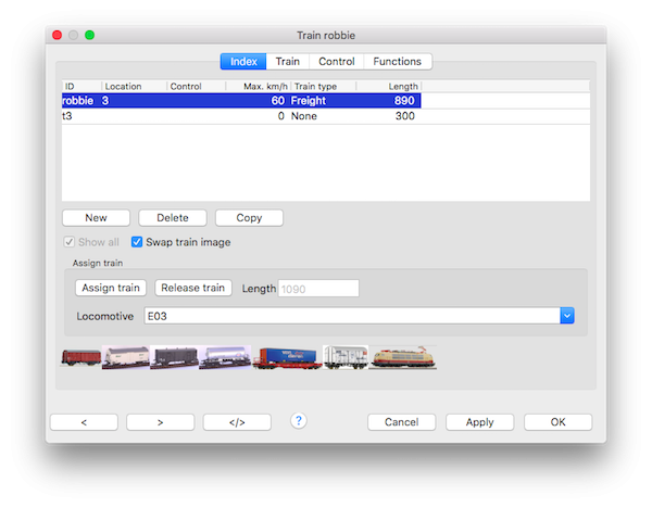 A train can be assigned to a locomotive for calculating length and weight.