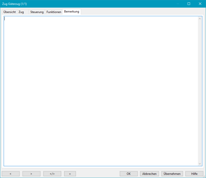 Registerkarte 'Bemerkung' für beliebigen Freitext.