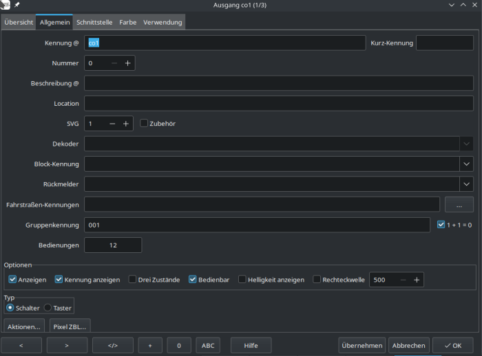 Die Kennung wird innerhalb von Rocrail als eindeutiger Schlüssel zur Referenzierung eines Ausgangs verwendet und ist daher sehr wichtig.