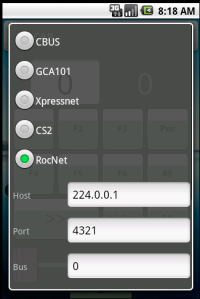- LocoNet GCA101 interface. → A multicast (UDP) capable Android device is needed.