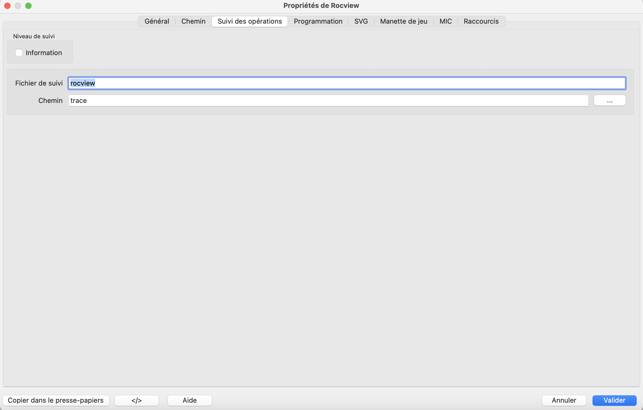 Si il est laissé vide aucun fichier de suivi ne sera écrit.