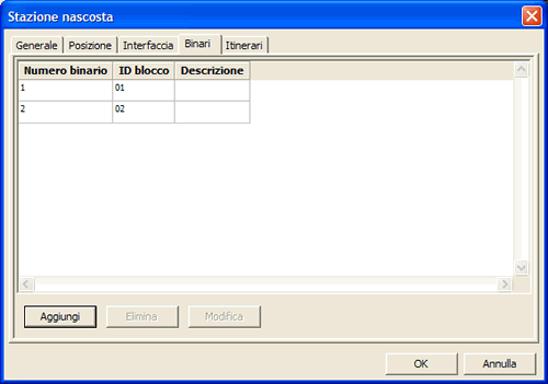 Apre la finestra Posizione per poter aggiungere un nuovo binario all'elenco binari.