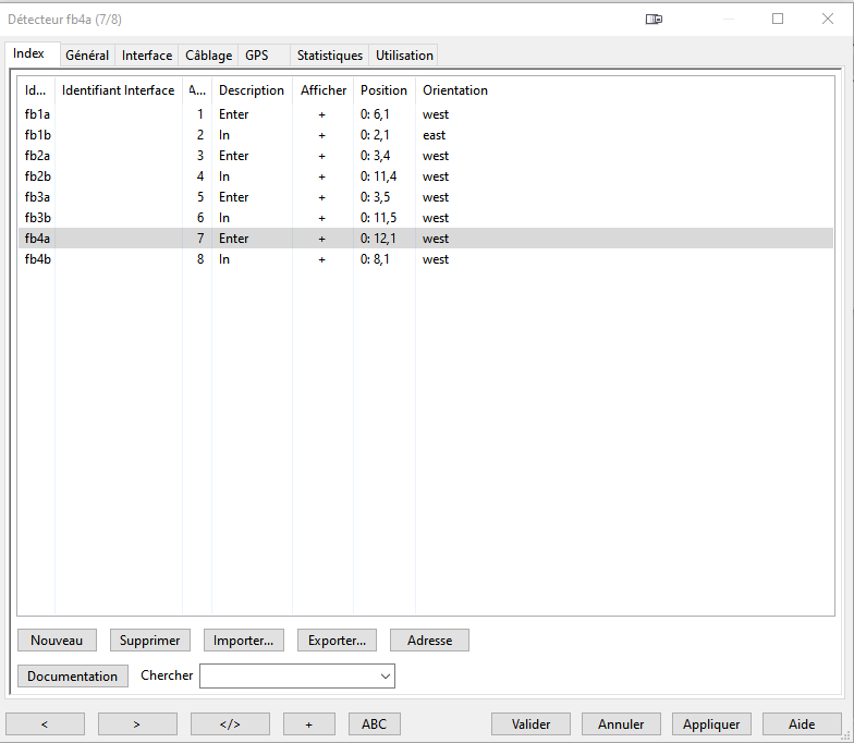 Importer un fichier .csv de détecteurs dans le tableau. Le séparateur doit être une virgule.