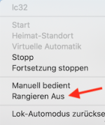 d) ist der "Rangier-Modus" der Lok EIN oder AUS;