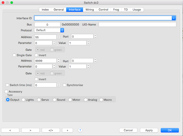 - Feste Kreuzungen müssen durch zwei Weichen mit der gleichen (Dummy)-Adresse dargestellt werden.