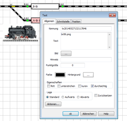 Rocrail bietet über das Kontextmenu die Möglichkeit Texte im Gleisplan zu positionieren um z.B. andere Objekte zu beschreiben: