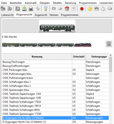 - Wagons können direkt mit <Alt> + <linke Maustaste> per Drag&Drop hinzugefügt werden. Sonst wie oben beschrieben.