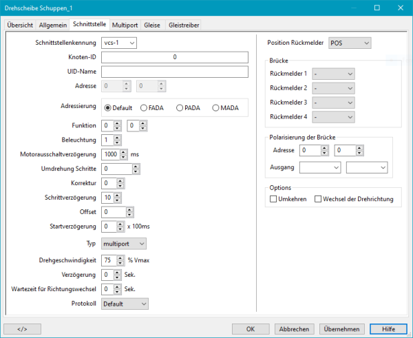 - Übersicht | Allgemein | Schnittstelle | MultiPort | Gleise | Gleistreiber | Einstellungen | Menü | Schiebebühnen-Einstellungen