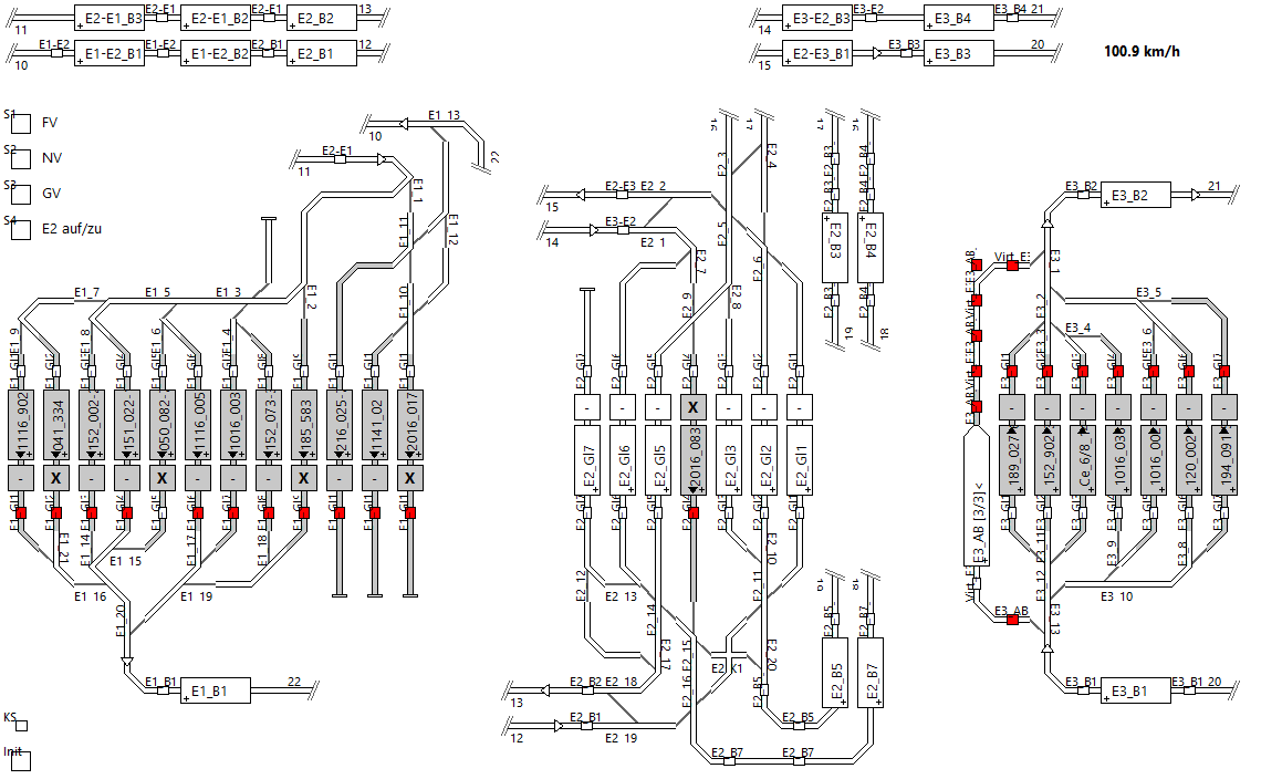 Mittels Klick auf den Schalter "E2 auf/zu" werden die Blöcke "E2_B3, E2_B4, E2_B5, E2_B7" geöffnet bzw. geschlossen.