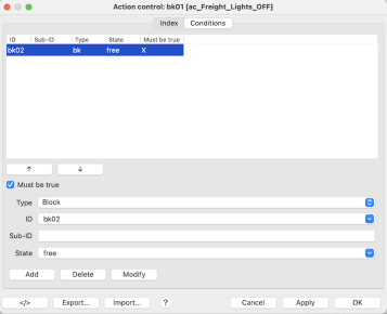 - the lights will go OFF when the block bk01 is free and the other block bk02 is free as well.