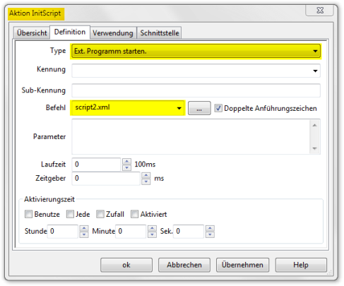 A second XML-script, which is located on all push-buttons as action and depending on the push-button, triggers appropriate system actions.