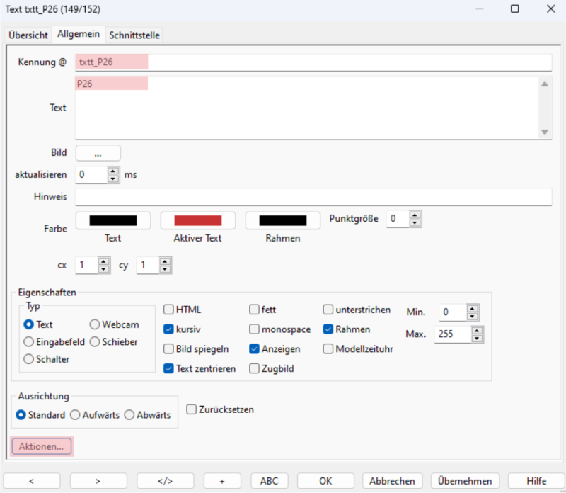 - Das Textfeld mit der rechten Maustaste anklicken um das Eigenschaften…-Fenster zu öffnen