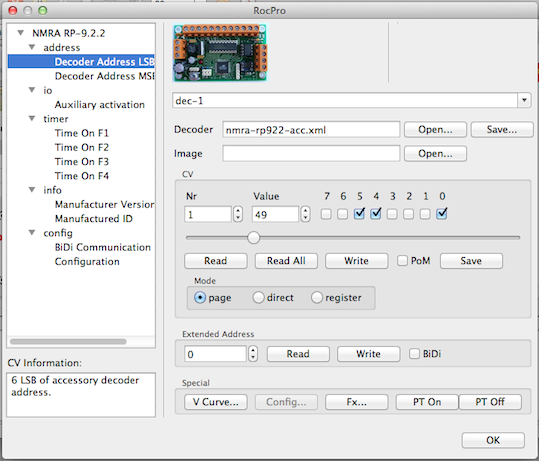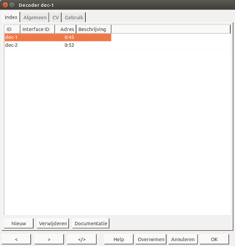 Als de decoder adres groter dan 0 is zal deze worden getoond in de RocPro dialoog voor programmeren van CVs.