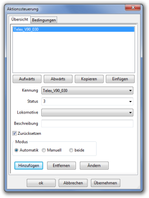 –» damit ist definiert, dass das Betätigen dieser Weiche die im Dialog eingestellte Aktion startet.