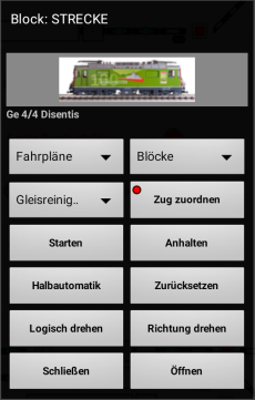 Wenn keine Lok im Block gesetzt ist, bleiben verschiedene Buttons ausgegraut.