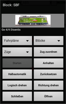 Ein kurzer Klick auf einen Block im Gleisbild öffnet das Block-Aktivitäts-Menü.