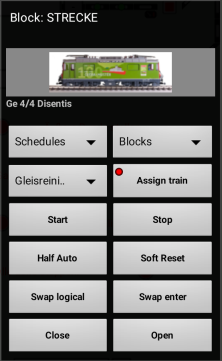 A short click on the Rocrail logo image opens the loco selection to set a loco in the empty block.