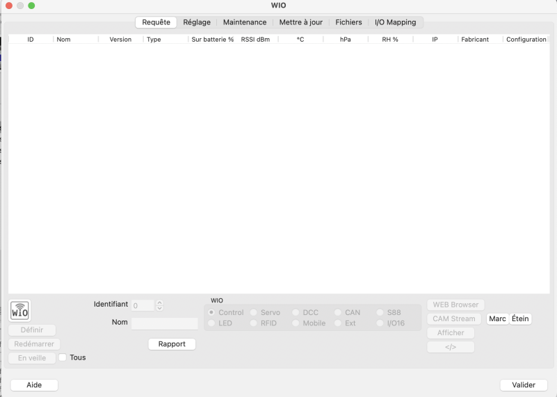 Le WIO sélectionné fera clignoter sa LED plus rapidement jusqu'à ce que la commande Show soit envoyée de nouveau en appuyant sur ce bouton.