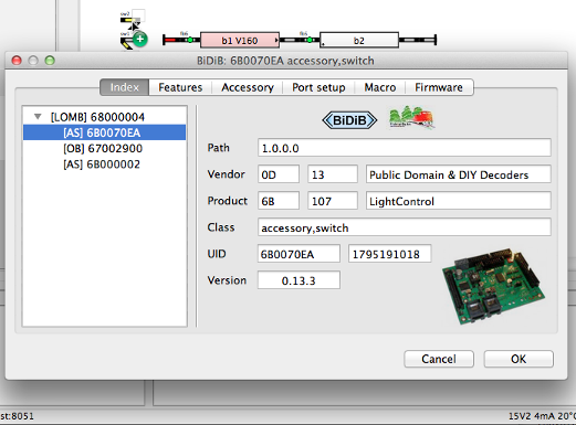 | This is a simple dialog for doing simple configuration jobs. For more sophisticated programming the BiDiB Wizard is recommended. |