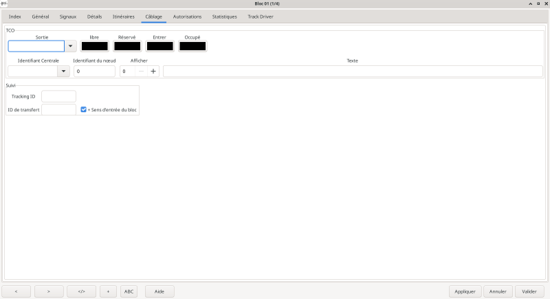 - Index | Général | Signaux | Détails | Itinéraires | Câblage | Autorisations | Statistiques | Trackdriver | Suivi | Menu | Détecteurs intégrés |