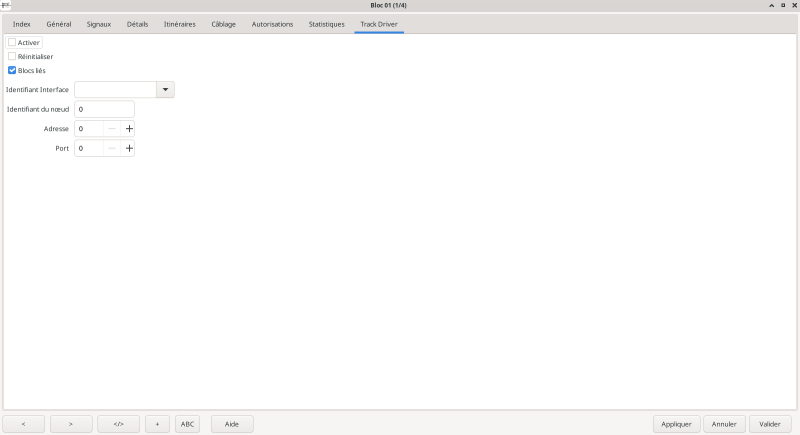 Si un bloc est connecté à un décodeur de locomotive normal (DCC) l'adresse DCC de ce décodeur doit être réglé dans le champ adresse du bloc. Le port peut être laissé à zéro.