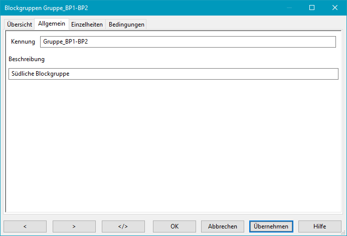Dieses Feld dient zur optionalen Beschreibung einer Blockgruppe mit freiem Text und hat keine weitere Bedeutung.