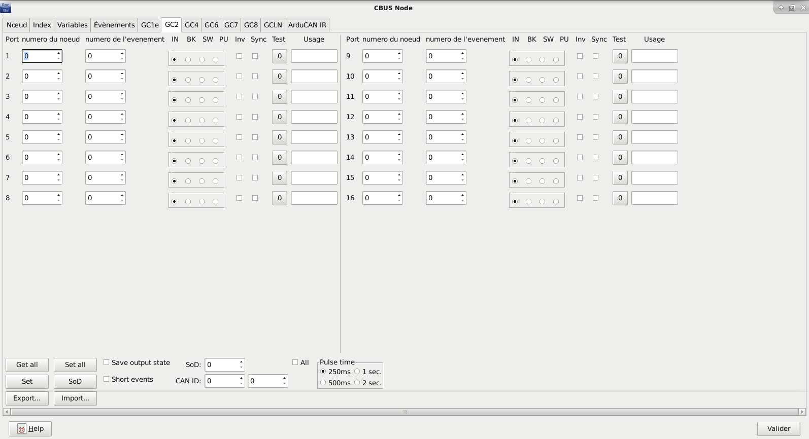 Les entrées utilisera le numéro du nœud du CAN-GC2 pour les évènements.