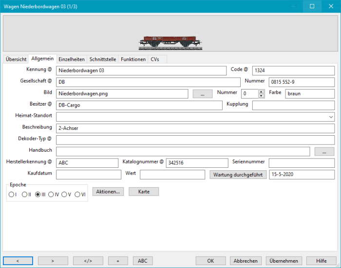 Freier Text zur Beschreibung des Wagons. Wird nur zur Anzeige verwendet und ist optional.
