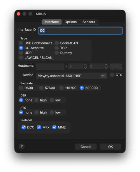 Setup as Lenz XpressNet CS.