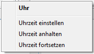Zur Steuerung des Uhrzeit-Dienstes im Rocrail-Server kann ein Kontextmenü auf der Rocview-Uhr geöffnet werden.