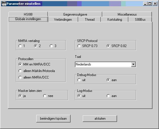 Kies MM en NMRA/DCC