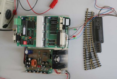 Dinamo heeft voor ieder blok een controlleruitgang om zowel analoge als digitale DCC loks gemixed aan te sturing op de spoorbaan. Documentatie van dit systeem kun je vinden op de site van Leon: http://www.vpeb.nl/