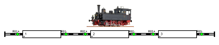 For this the easiest way of understanding is to consider a freight train with many cars for example, pulled by an electric engine with the two cabs of the locomotive marked with 1 and 2. The modeler is aware that such a locomotive moves forwards when its cab 1 is at the front end seen in driving direction (with three-rail engines often the position of the slider on this side is a clear direction indicator).