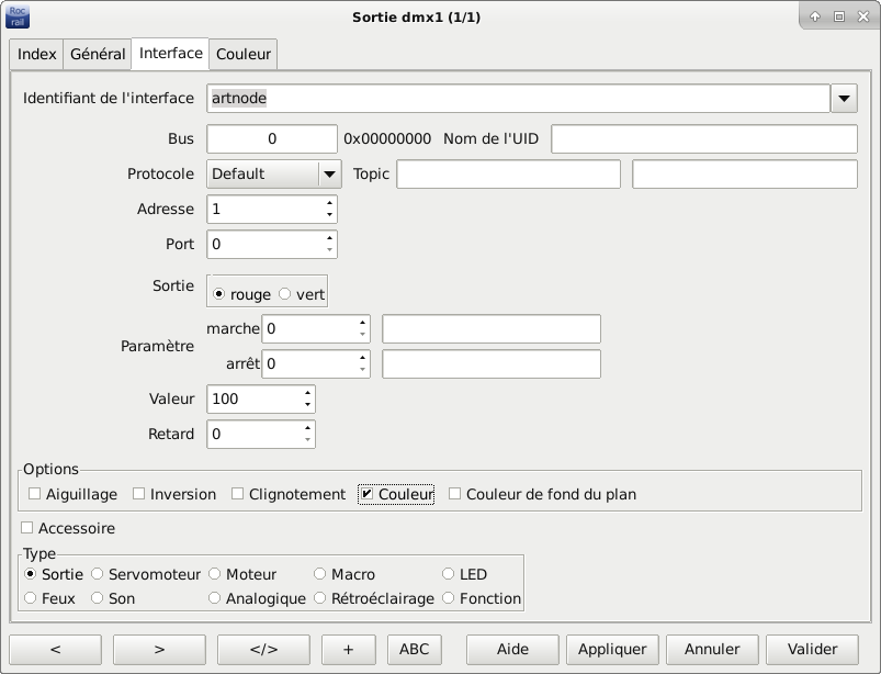 | Adresse | Adresse du périphérique DMX entre 1 et 512 |